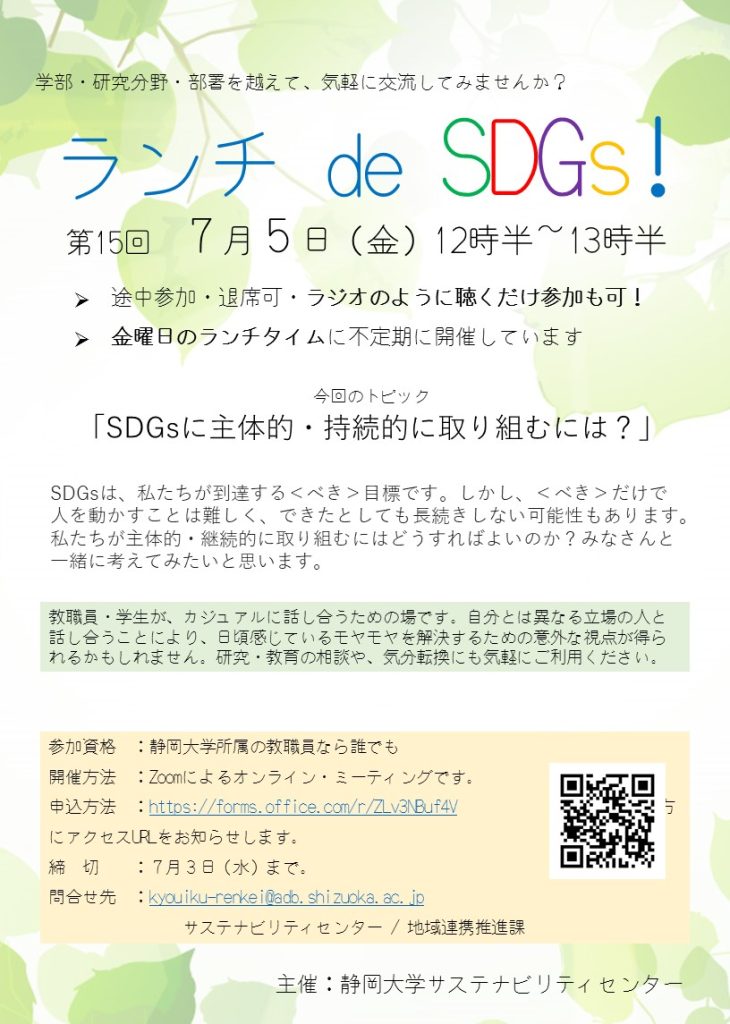 7月5日(金)に「第15回ランチ de SDGs!」を開催します。