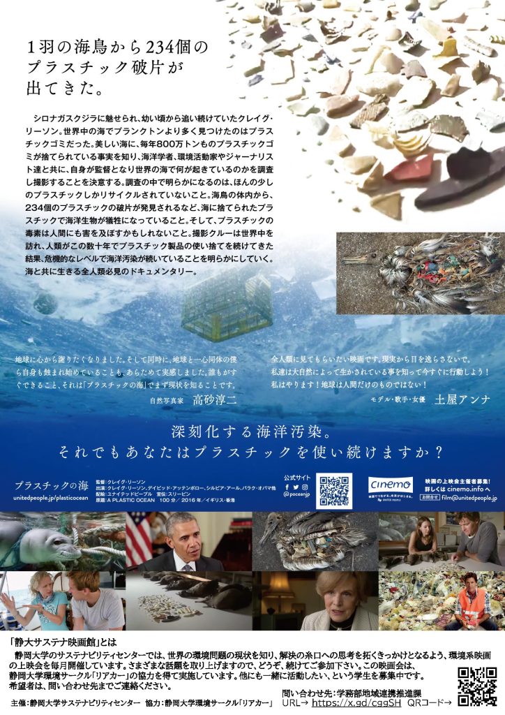 上映映画:プラスチックの海(予告編:https://unitedpeople.jp/plasticocean/