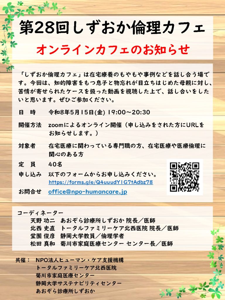 「しずおか倫理カフェ」は在宅療養のもやもや事例などを話し合う場です。